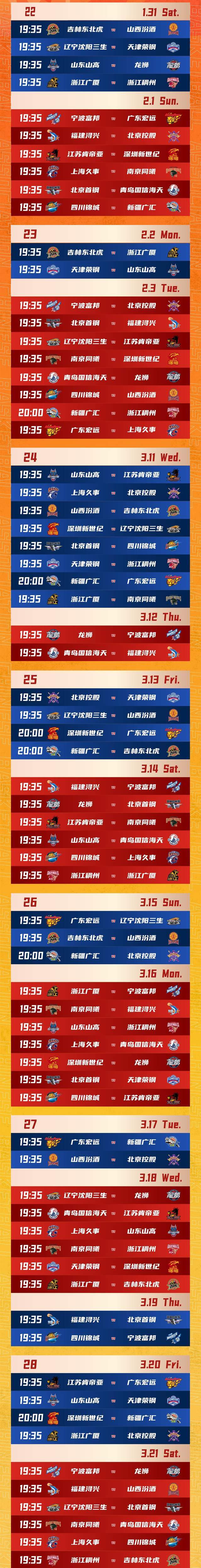 新赛季的赛程,我全部放在了下面,喜欢CBA的球迷朋友们,赶紧收藏起来,以免到时候找不到了吧。