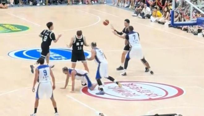 10月19日晚上的比赛,广东队在热身赛中以99-77大胜西班牙赫罗纳队。这场比赛的过程中可能是对方输分太多,输急了眼,赫罗纳队的14号球员在场上频繁挑衅广东队的后卫赵睿,甚至有锁喉、抓脸等危险的动作。这个时候老队长周鹏挺身而出,给赫罗纳队14号球员上身体对抗警告对手,但是对手并不知道收敛,所以周鹏选择强硬的回击,用手肘部击打对手14号球员致其倒地,这个时候裁判才终于吹停了比赛。
