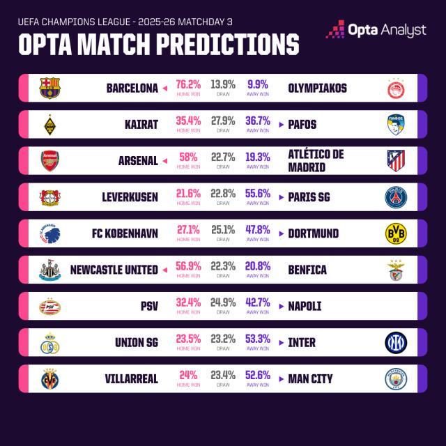 欧冠联赛阶段第3轮本周三凌晨对阵