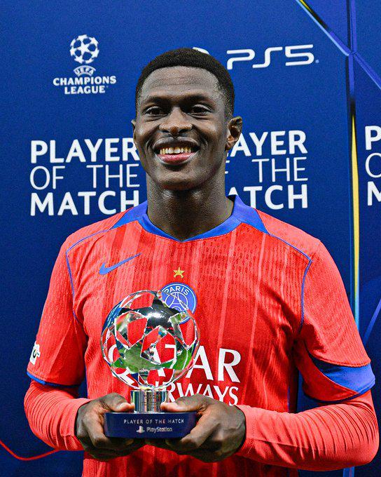 雷速体育10月22日讯 在刚刚结束的一场欧冠联赛阶段第3轮比赛中,巴黎圣日耳曼7-2大胜勒沃库森,赛后大巴黎球星门德斯当选本场比赛全场最佳球员。