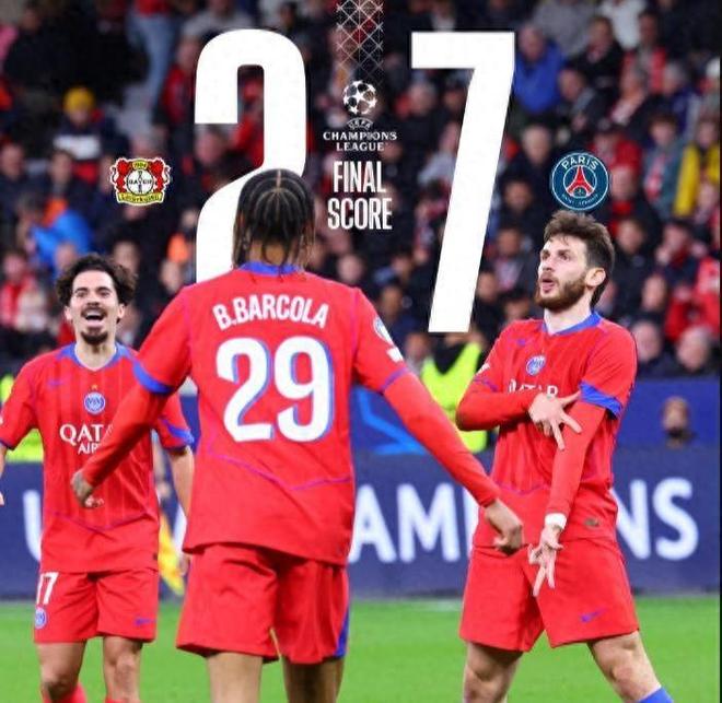 最终,巴黎圣日耳曼客场7-2大胜,豪取欧冠三连胜,以9分领跑小组,净胜球高达10个。而勒沃库森则遭遇重创,三轮仅积2分,排名跌至36支参赛队中的第27位。
