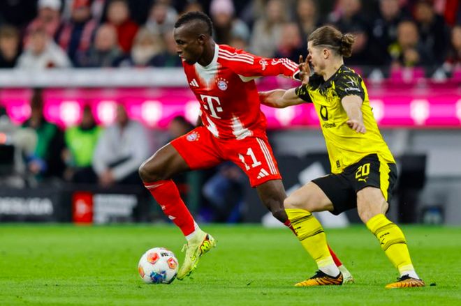拜仁的进攻如同水银泻地一般,第35分钟,奥利塞的射门打在立柱外侧,弹出底线,多特蒙德的防线面对拜仁的三叉戟,顾此失彼。