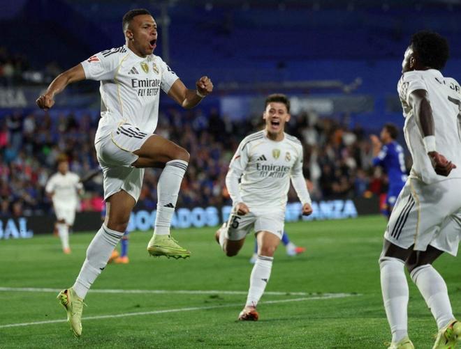 第77分钟,皇马打反击,赫塔菲球员恩约姆对维尼修斯进行暴力犯规,裁判向其出示红牌,皇马在场上多打1人。3分钟后,皇马终于打破僵局。居莱尔送出直塞,姆巴佩领球后转身射门,1-0!姆巴佩已经连续11场比赛破门!