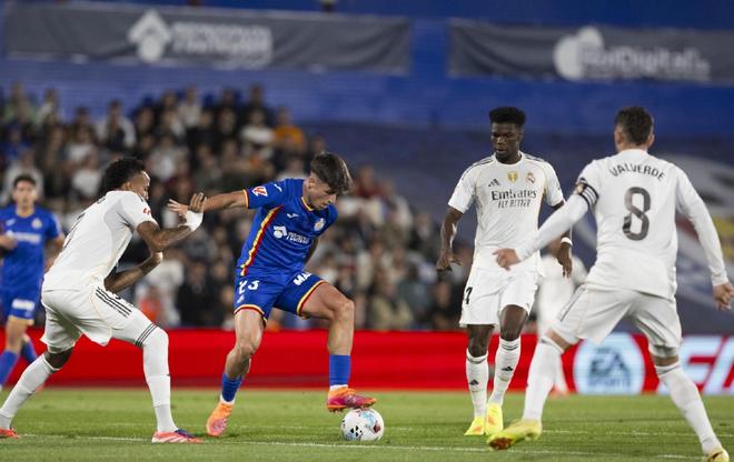 赛前,先赛的巴萨超越皇马,登顶西甲。这场比赛,皇马至少拿到3分,才能抢回榜首。上半场,皇马的进攻主要靠姆巴佩,他多次冲击对方禁区,且2次倒在禁区里,但裁判没有表示。